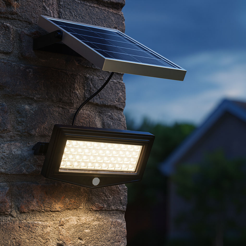 This commercial grade solar flood light delivers exceptional illumination, combining advanced LED technology with a high-efficiency solar panel for optimal performance. Designed to provide powerful 1000-lumen brightness, it features 44 SMD LEDs housed within a durable aluminium alloy and toughened glass construction, ensuring resilience against environmental conditions. Engineered with an IP65 rating, it offers reliable protection against dust and water ingress, making it suitable for outdoor applications in residential, commercial, and industrial settings. The separate 5W solar panel, connected via a 3.5-metre cable, allows for flexible installation, ensuring maximum solar exposure while enabling the floodlight to be positioned in shaded or protected areas as needed.