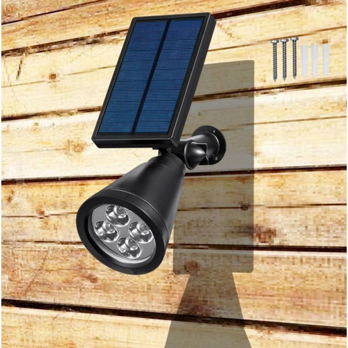 INCLUDES: 1 x solar spotlight with 4 powerful LEDs, 1 x solar panel, 1 x rechargeable battery, 1 x spike