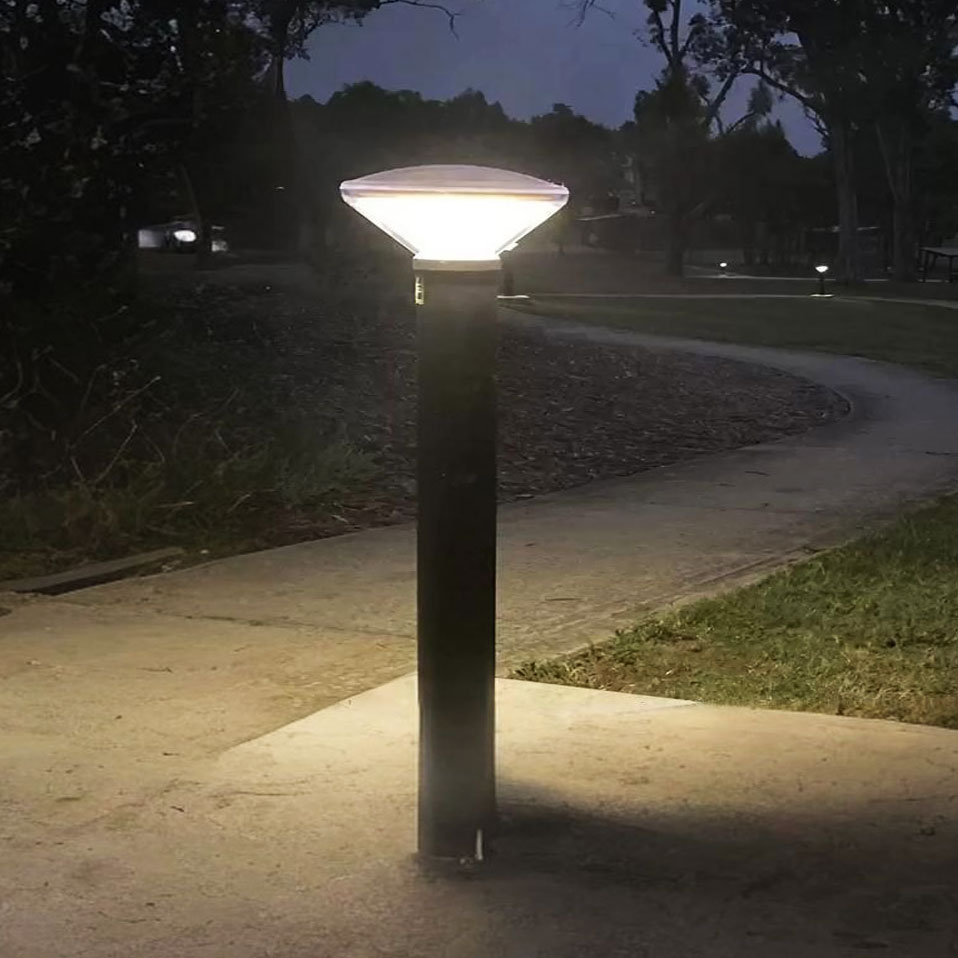 Designed for efficiency, this solar bollard light features premium directional LED modules with a fixed daylight white output of 5000K, delivering crisp, high-visibility illumination. The integrated solar panel ensures consistent operation, even in low-light conditions, with an advanced LiFeP04 battery that provides more than seven nights of autonomy. With an energy-efficient 6.3W solar panel, it fully recharges within five hours under optimal sunlight and remains operational even during extended periods of cloud cover. The fixture complies with AS/NZS 1158.3.1-PP5 lighting standards, ensuring superior performance in commercial installations.