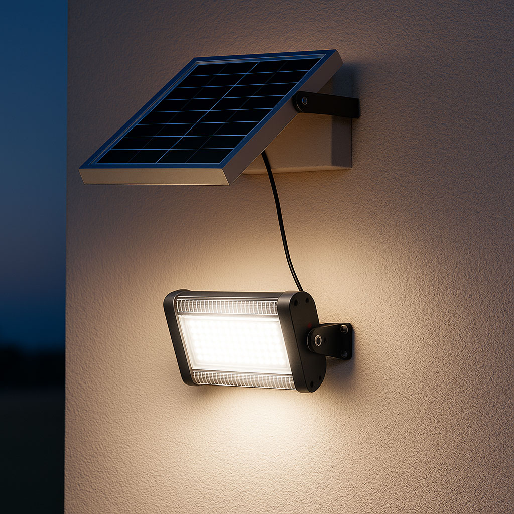 The unit includes a separate solar panel that can be installed up to 3.5 meters from the light fixture, allowing for flexible placement to maximize solar exposure while positioning the flood light indoors, undercover, or in shaded areas. With an advanced ALS2.0 technology system, the integrated high-capacity lithium-polymer battery provides extended operating times, ensuring consistent illumination throughout the night. The solar panel efficiently recharges the battery within 8 to 10 hours of daylight exposure, enabling the light to operate autonomously from sunset to sunrise. This model does not feature a motion sensor but offers continuous lighting, enhancing security and visibility in residential and commercial environments.