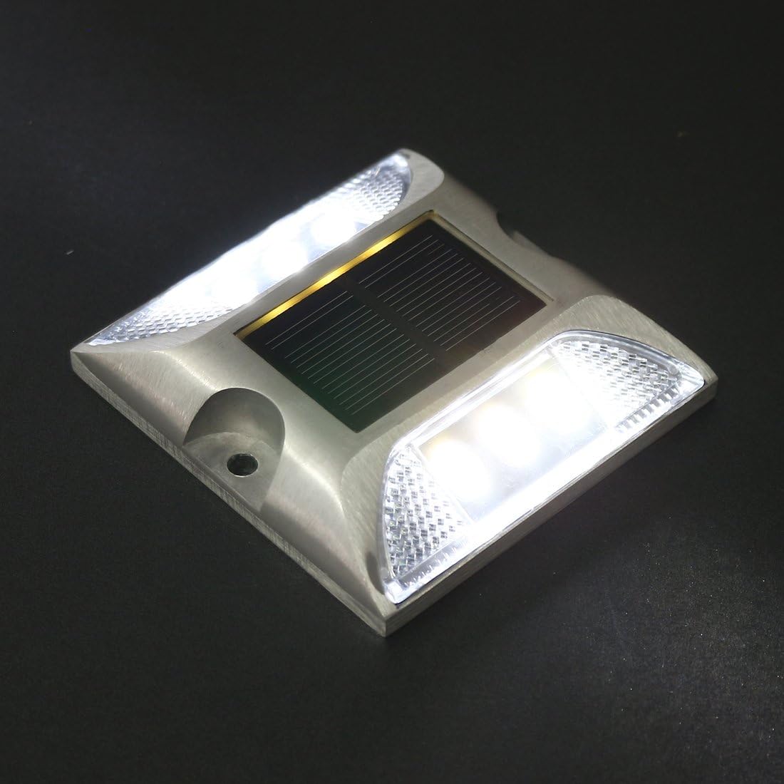 Measuring 105mm by 105mm and weighing just 0.3kg, the Solar Road Stud is designed to be both lightweight and compact, yet it can bear loads of up to 20 tonnes. Its visible distance exceeds 500 meters at night, providing ample warning and guidance to drivers, enhancing safety for traffic control, lane markers, pedestrian crossings, and various other applications. Whether used in commercial and industrial sites, bridges, loading docks, or even as decorative lighting in gardens and public parks, this road stud is a versatile and essential addition to your safety measures.